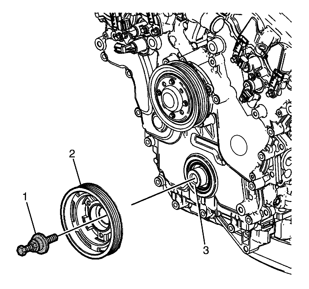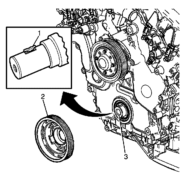 3. Install the crankshaft balancer (2) on to the crankshaft (3).