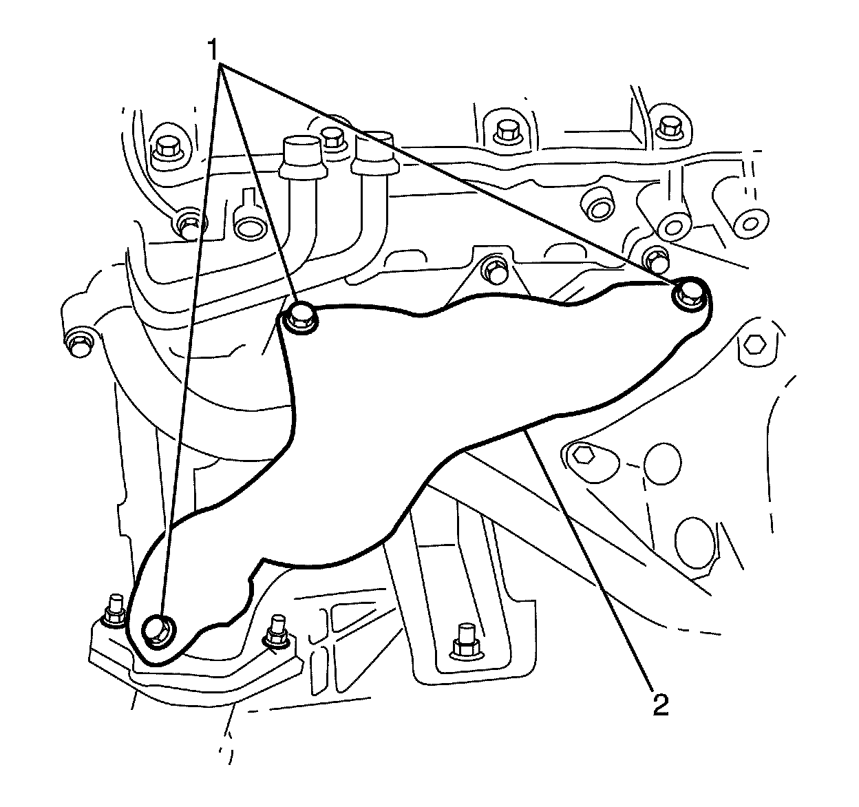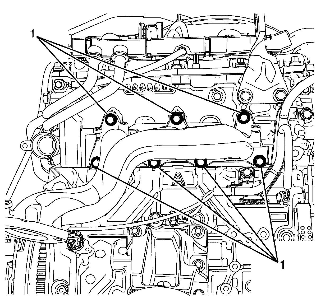 3. Install the NEW exhaust manifold to cylinder head retaining bolts (1).