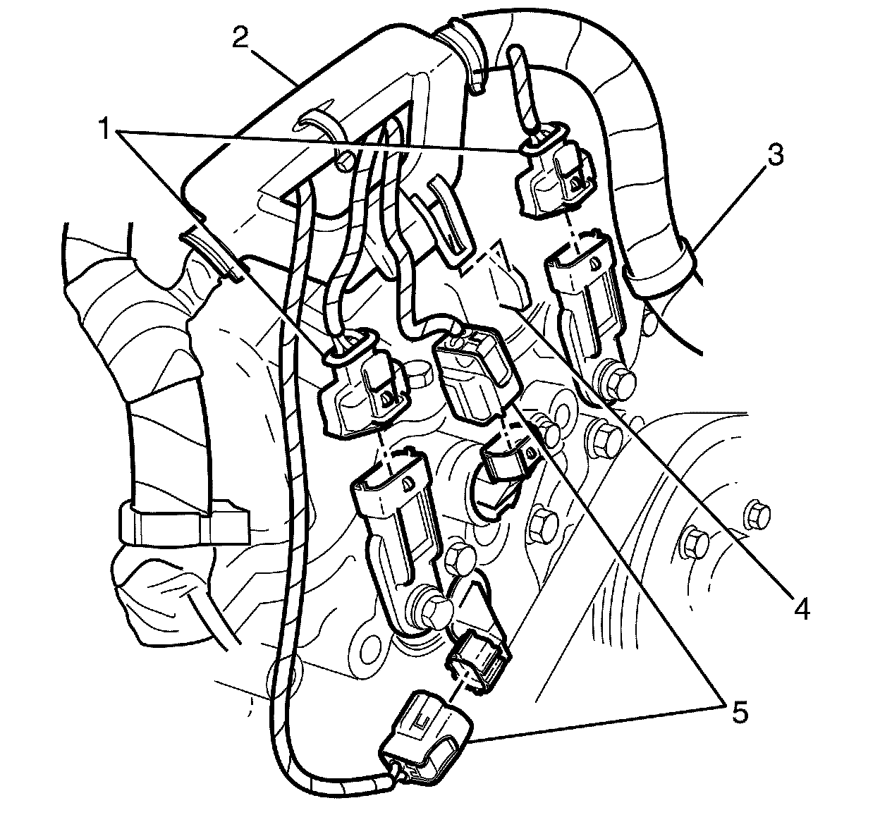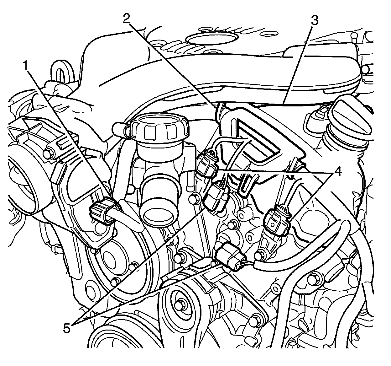 3. Disconnect the right bank intake and exhaust camshaft position actuator valve electrical connectors (5).