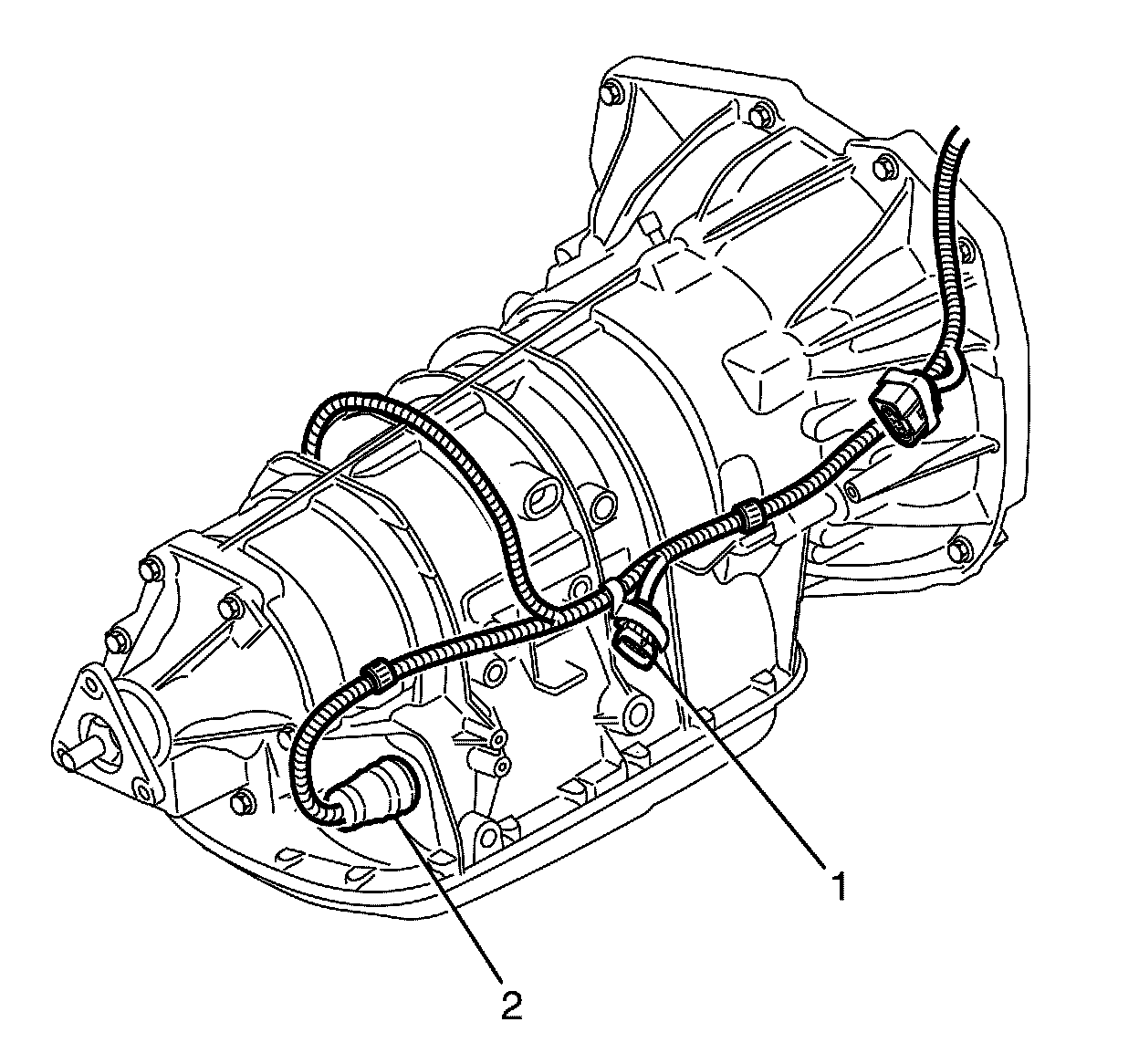23. Disconnect the main transmission electrical connector (2).