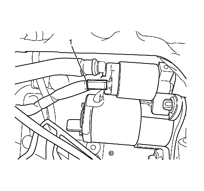 37. Disconnect the starter motor electrical connector (1).