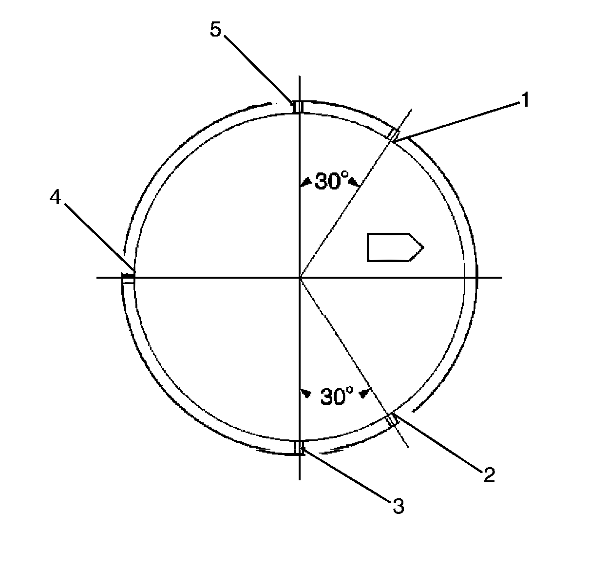 1. Correctly orient the oil control ring expander (1) as shown before installation. The ends of the oil control ring expander (1) must be facing toward the top of the piston.