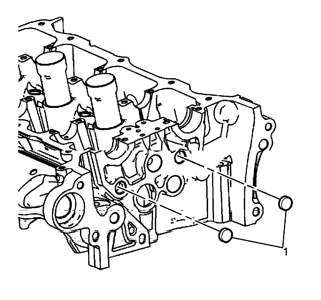 10. Remove the cylinder head oil gallery expansion plugs (1).