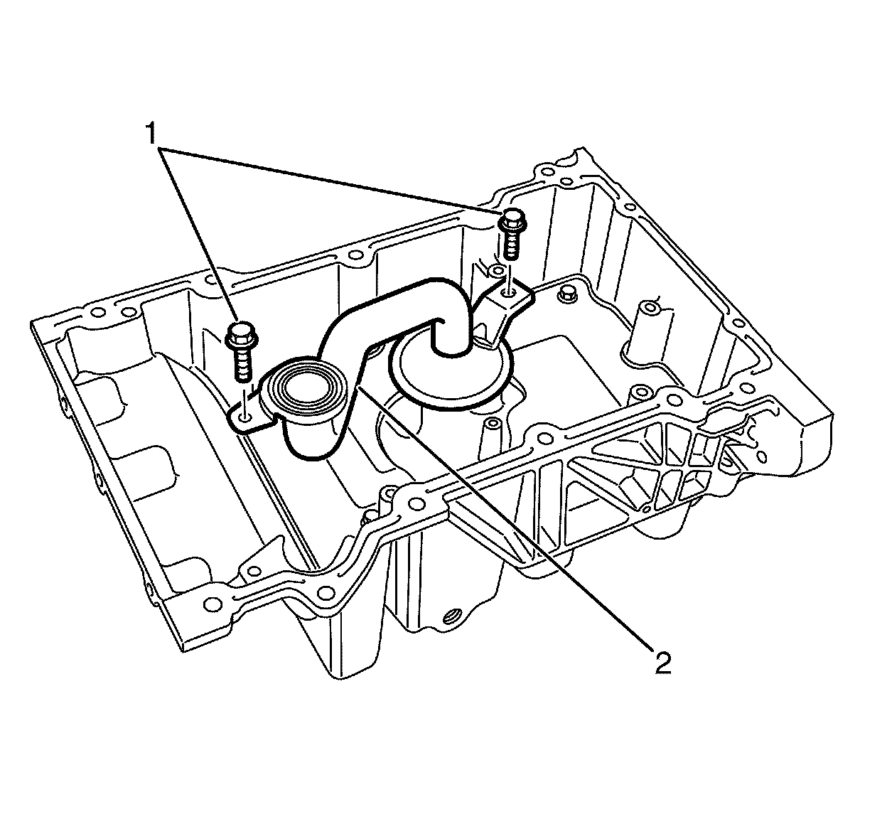 10. Remove the oil pan baffle (2).