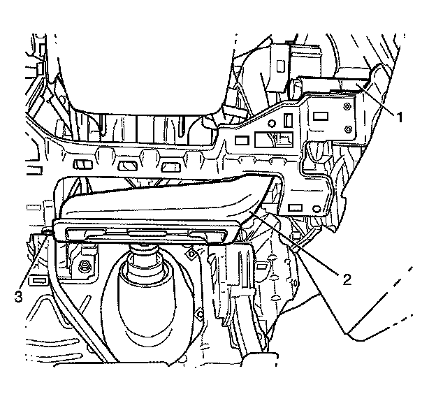 2. Remove the left side floor air outlet duct to instrument panel (I/P) retainer retaining screw (3).