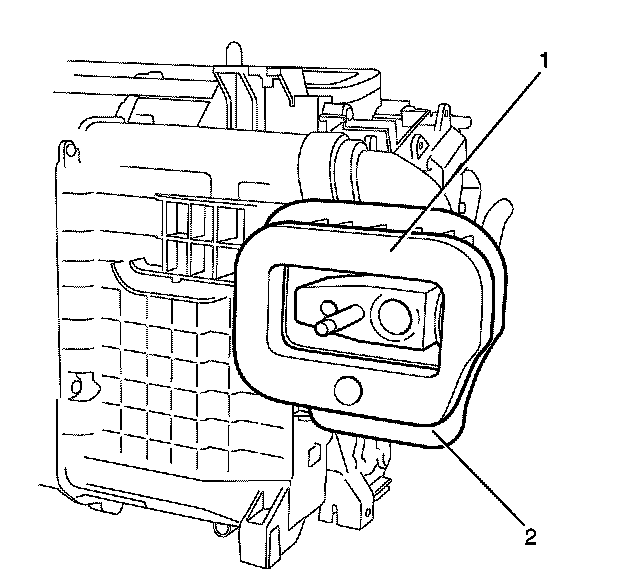 Important: Using a commercially available adhesive install the foam seal (1) to the HVAC module assembly (2)