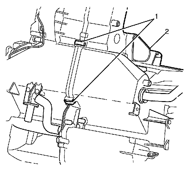 5. Install the HVAC module assembly retaining clips (1) to the HVAC module assembly (2).