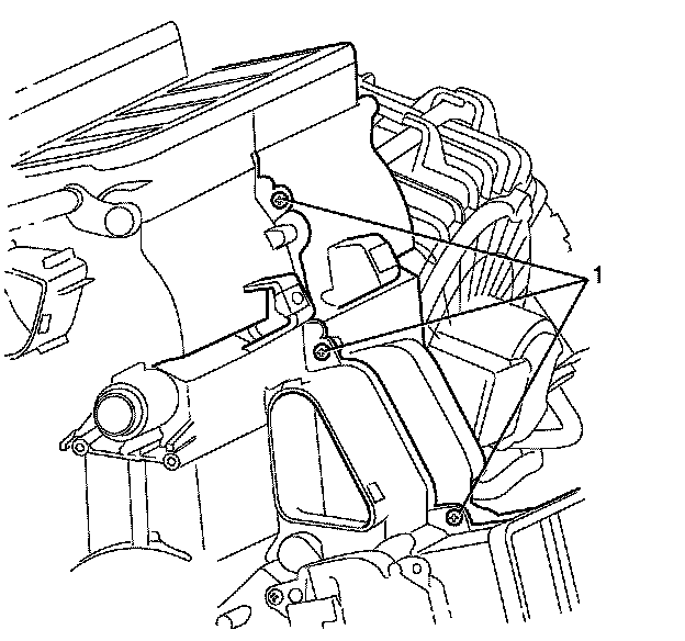 14. Remove the left side HVAC module assembly housing to right side HVAC module assembly housing retaining screws (1).