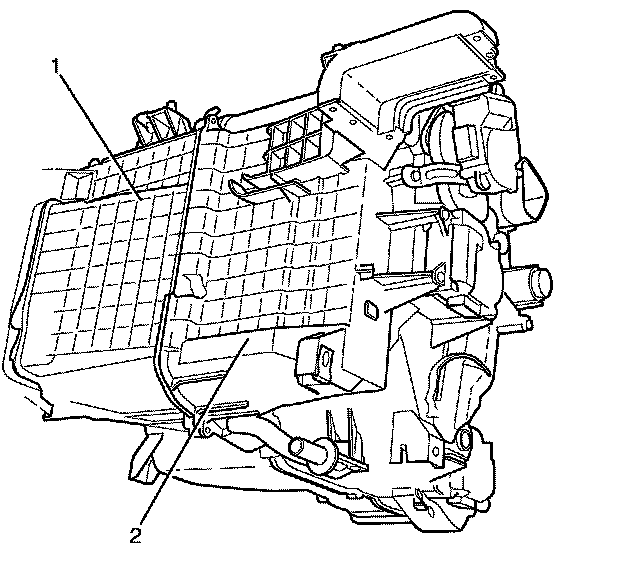 Important: Remove the evaporator (2) by sliding it out of the HVAC module assembly (1).