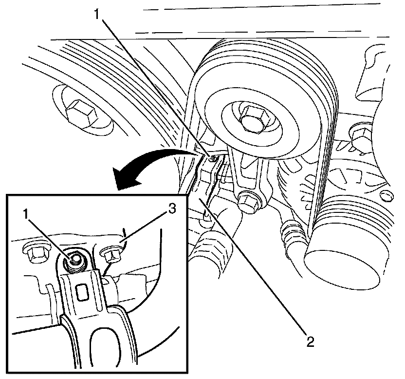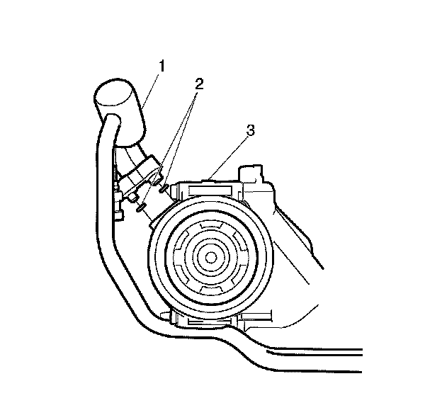 7. Position the discharge hose retaining bracket (2) away from the oil pan (3).