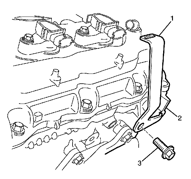 25. Install the left engine cover mounting bracket to cylinder head retaining bolt (3).