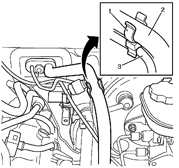 15. Disconnect the vacuum hose (1) and the vacuum brake booster check valve (3) from the vacuum brake booster (2).