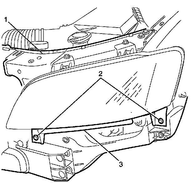 6. Remove the headlamp bracket (3) from the front end module (1).