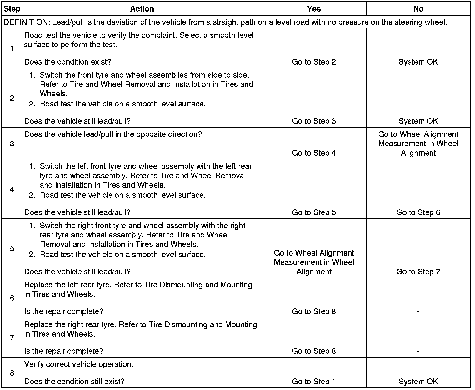 Radial Tire Lead/Pull Correction