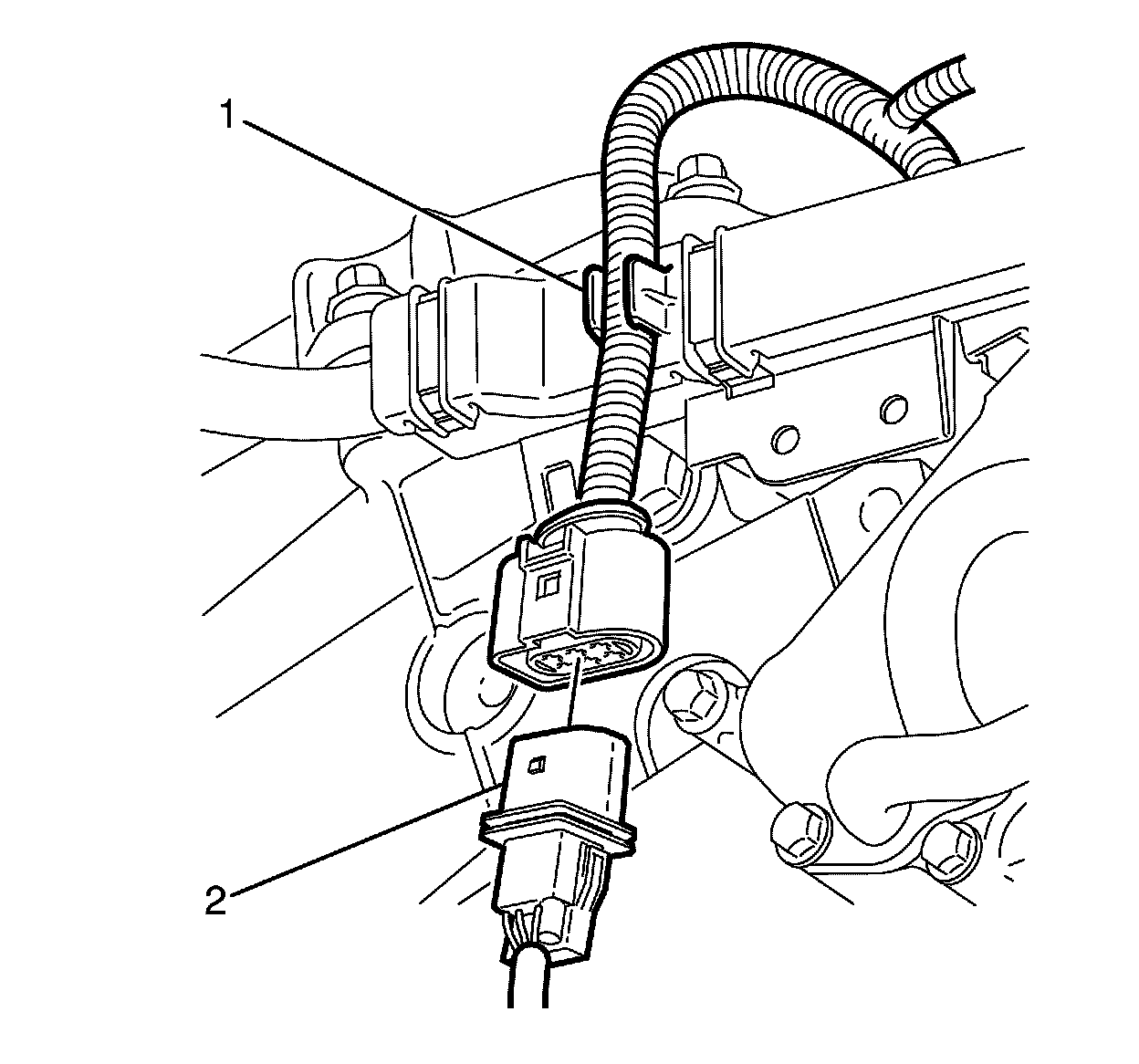 4. Disconnect the heated oxygen sensor (HO2S) electrical connector (2).