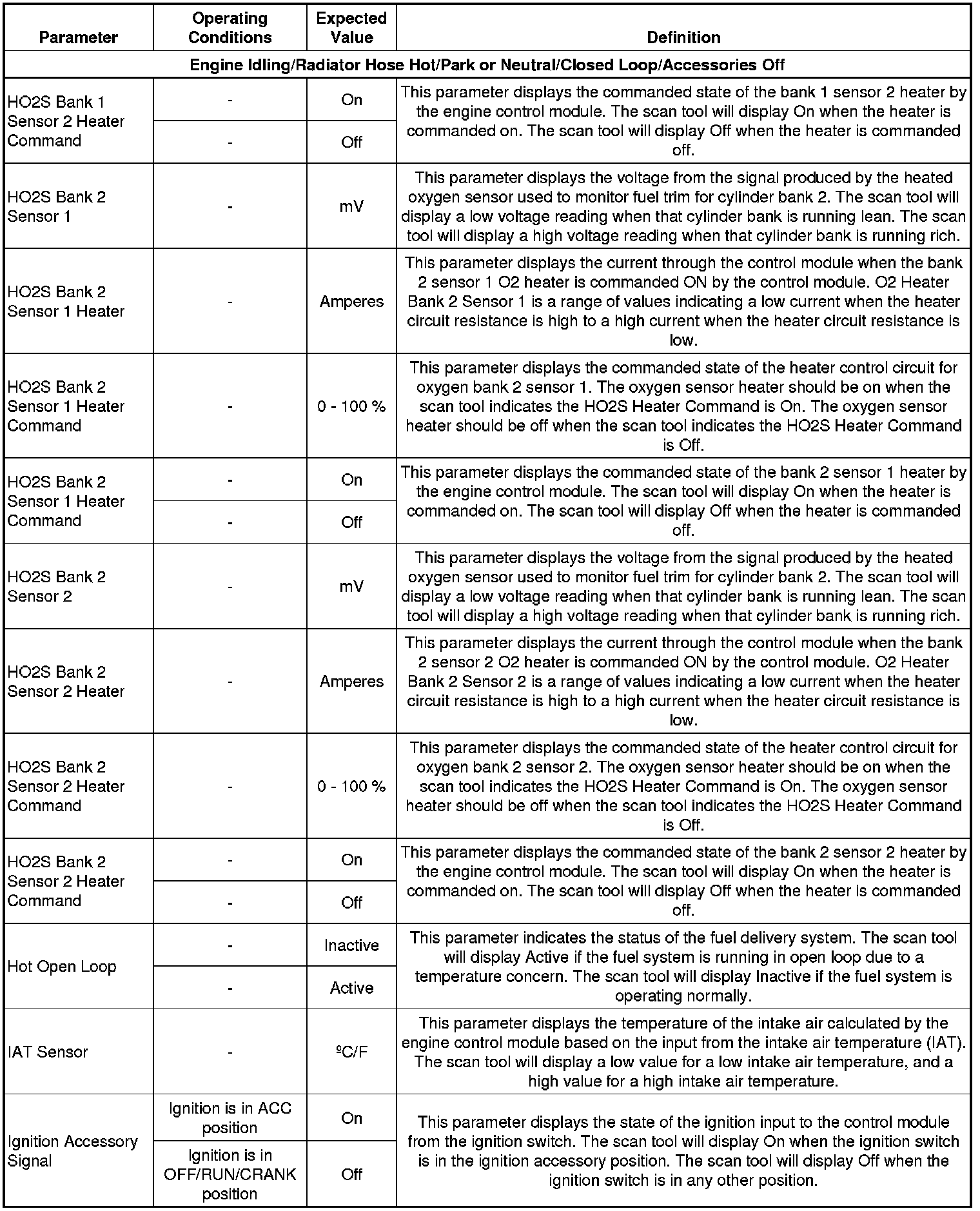 Only the parameters listed below are referenced in this service information for use in diagnosis. If all values are within the typical range described below, refer to Symptoms - Engine Controls (- Symptoms - Engine Controls) .