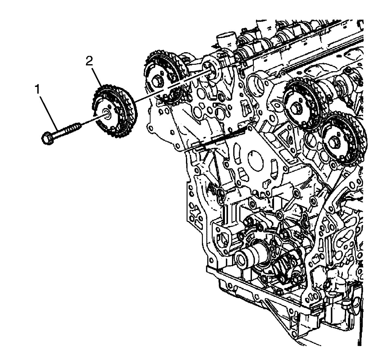 * DO NOT remove the camshaft position actuator to camshaft retaining bolt at this time.
