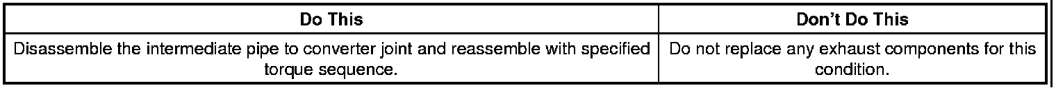 Verify the customer concern. If as described above, disassemble the intermediate pipe to catalytic converter flange joint on both sides and reassemble with the specified torque sequence shown in picture above.