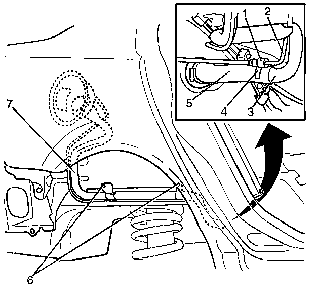 11. Manoeuvre the fuel filler tube (7) and remove from the vehicle.