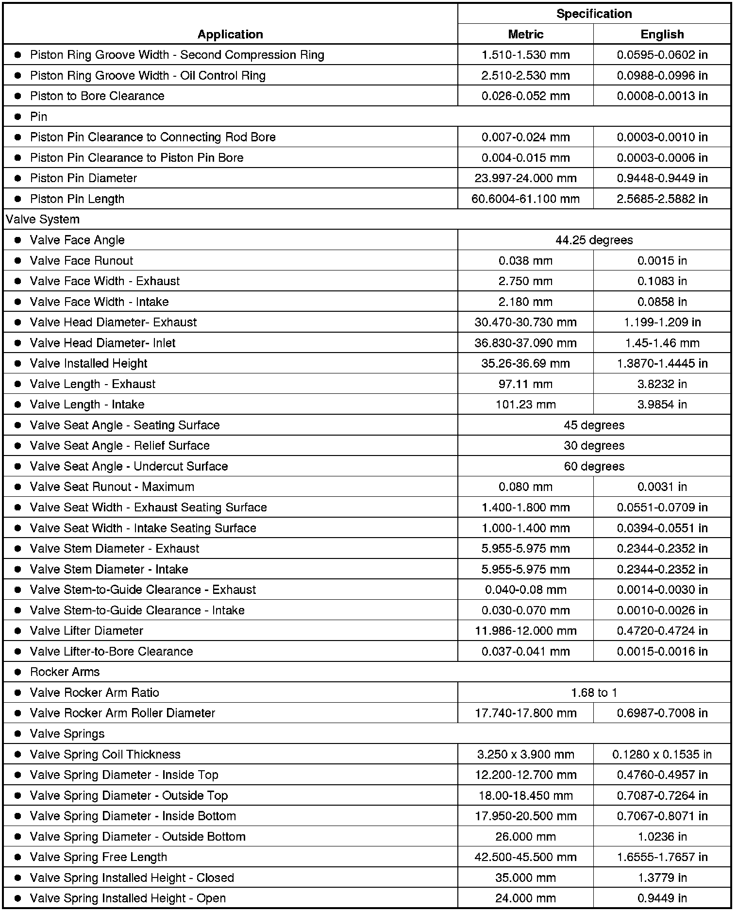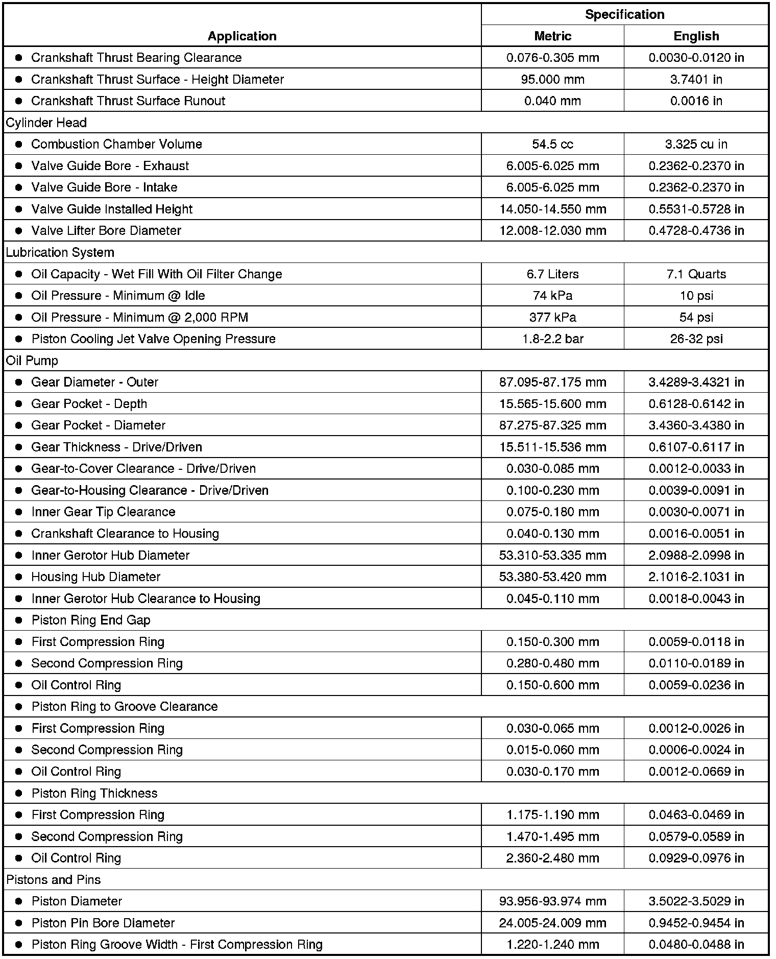 Engine Mechanical Specifications