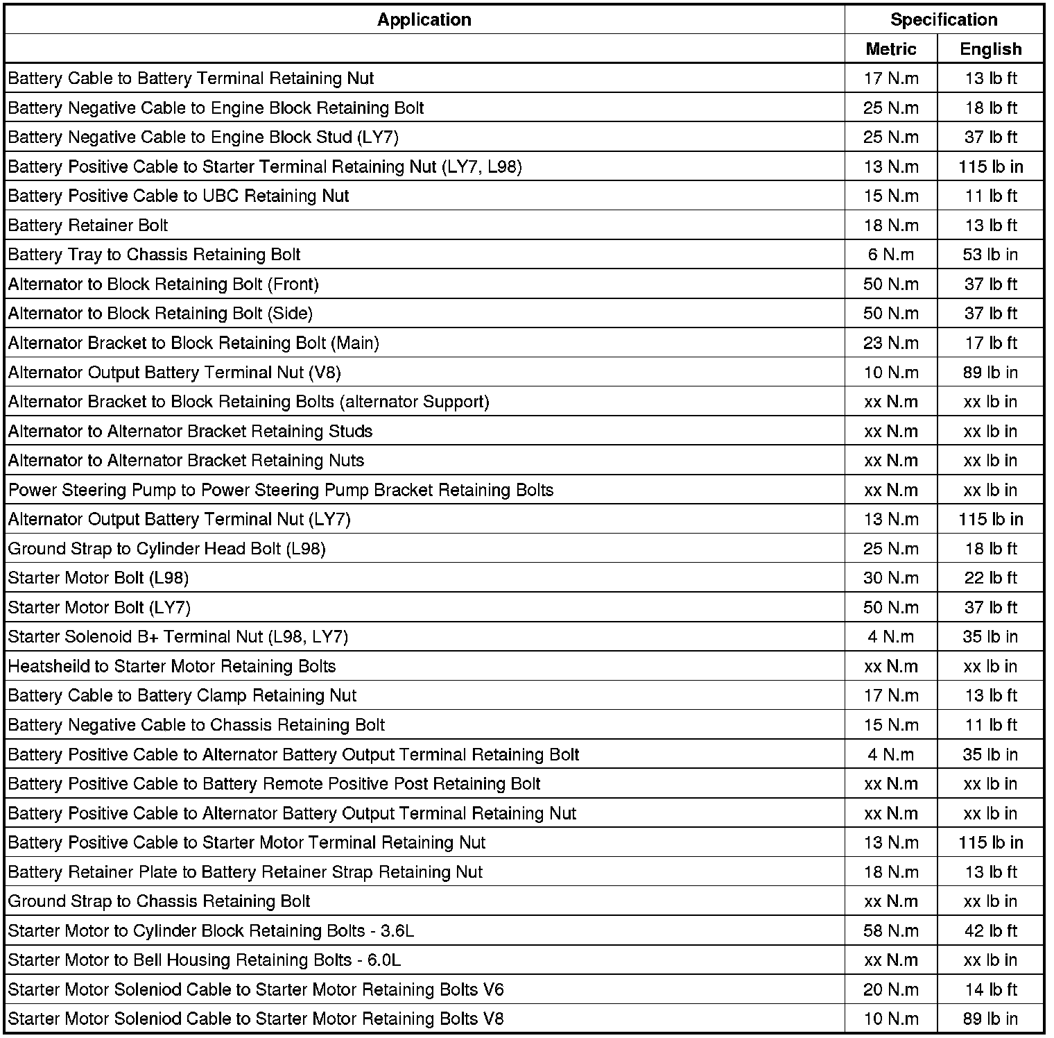 Fastener Tightening Specifications