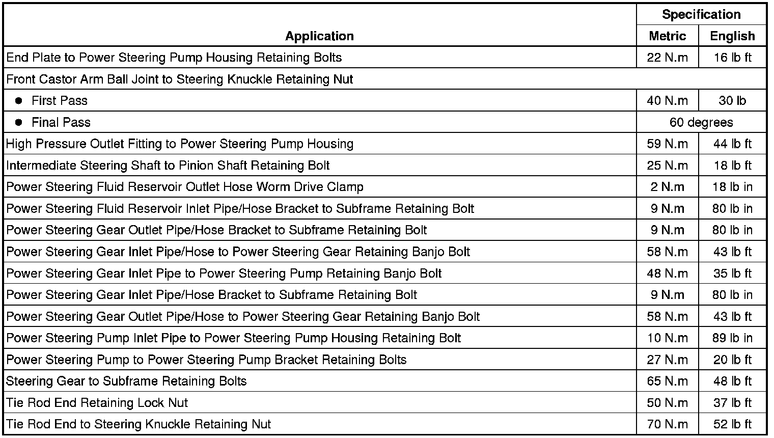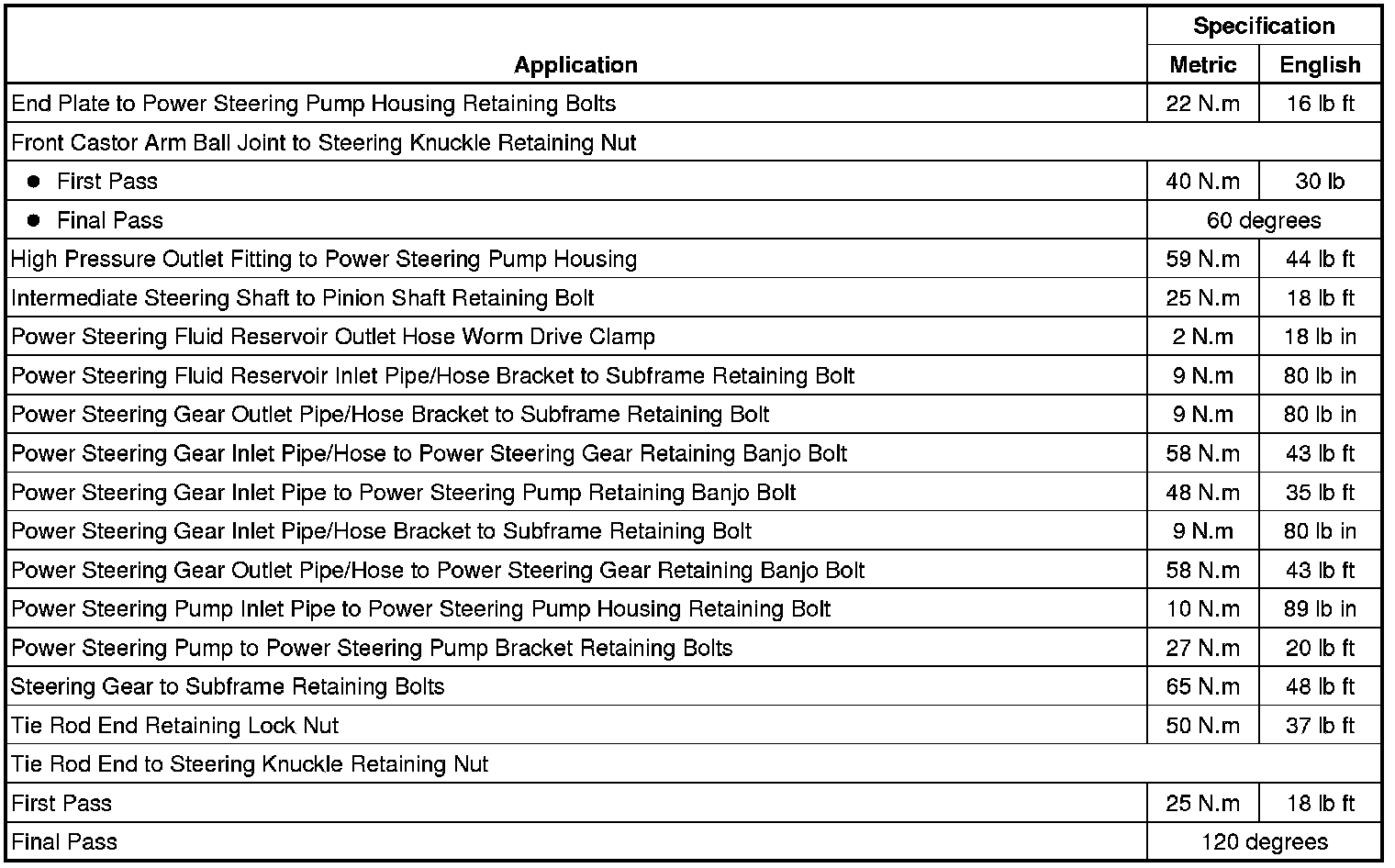 Fastener Tightening Specifications