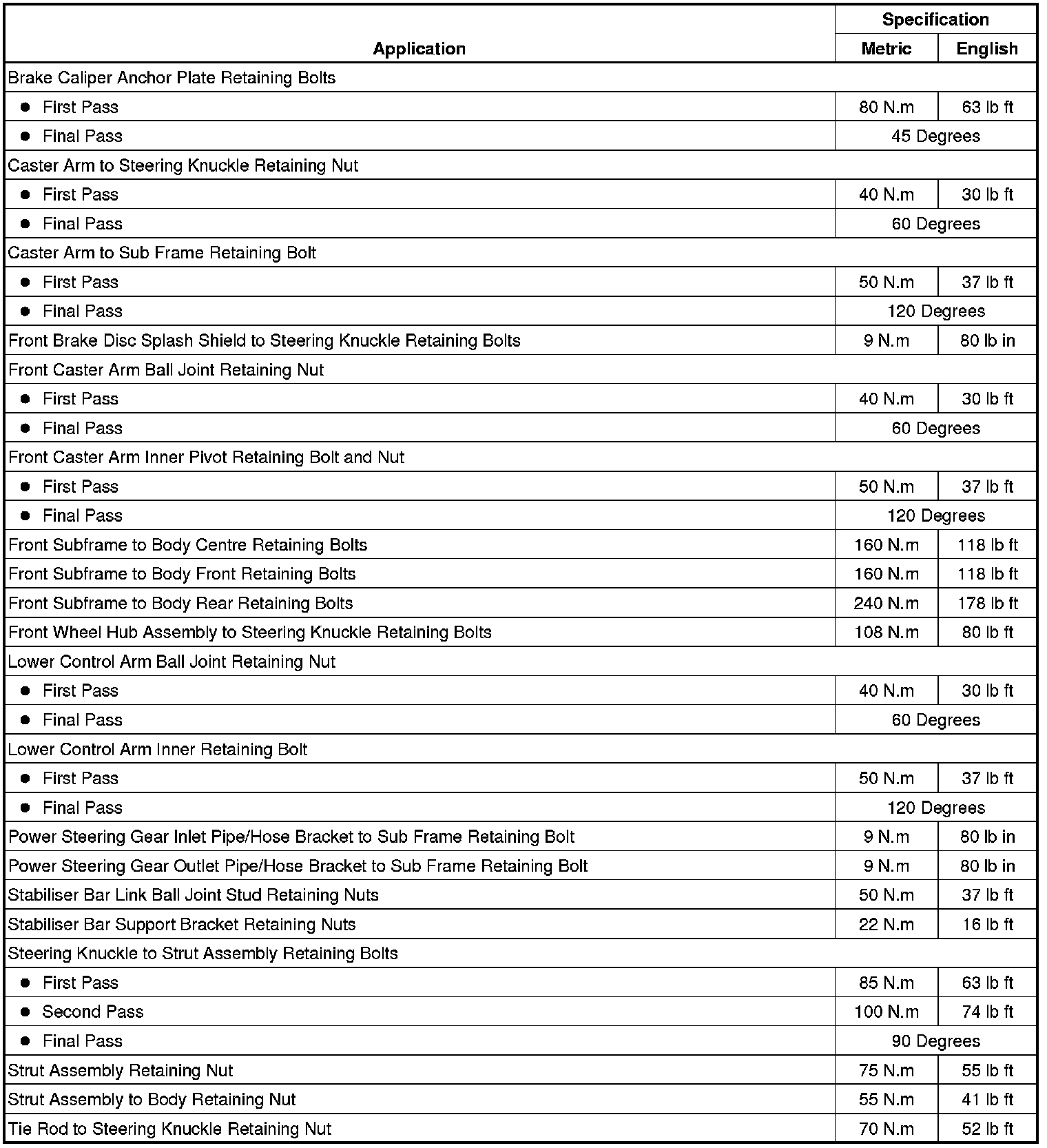 Fastener Tightening Specifications