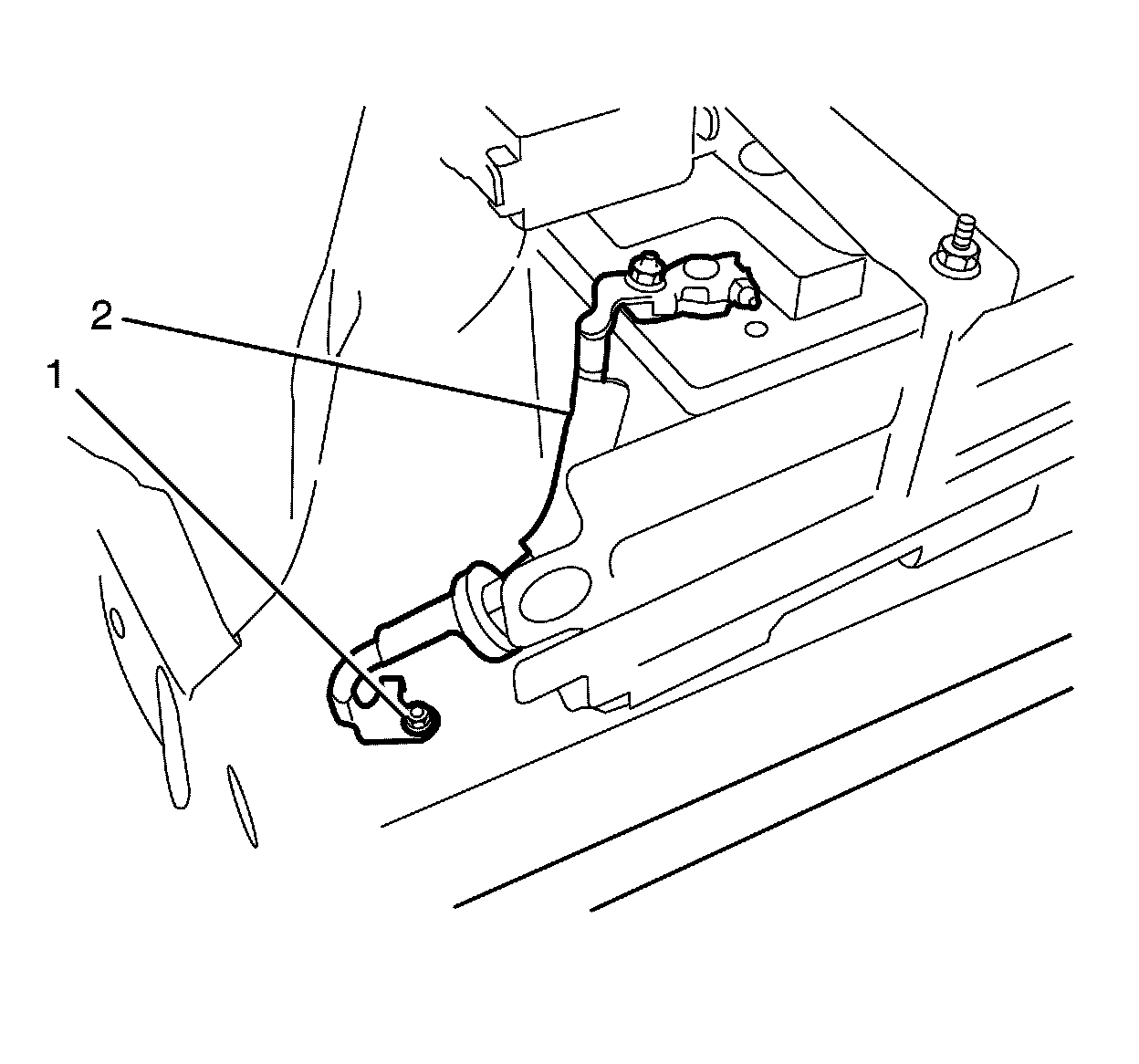 5. Remove the negative battery cable to chassis retaining bolt (1).