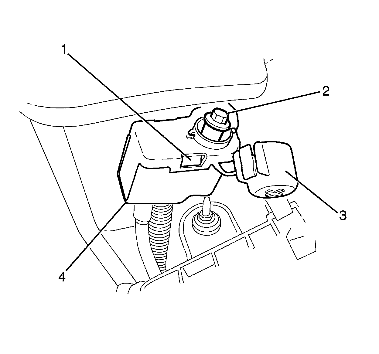10. Press the retaining clip (1) to remove battery post protective cover (4).