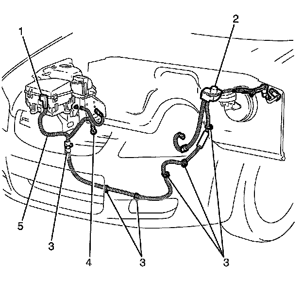 10. Remove the front battery positive cable (5) from the engine compartment.