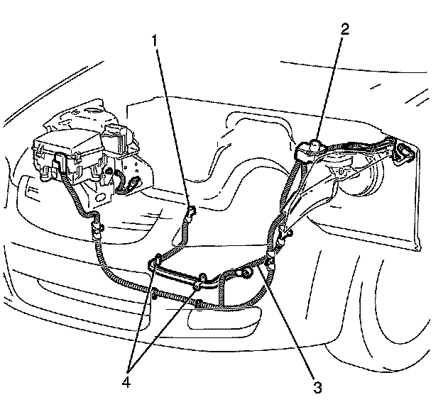 2. Install the starter battery positive cable to chassis retaining clips (4).
