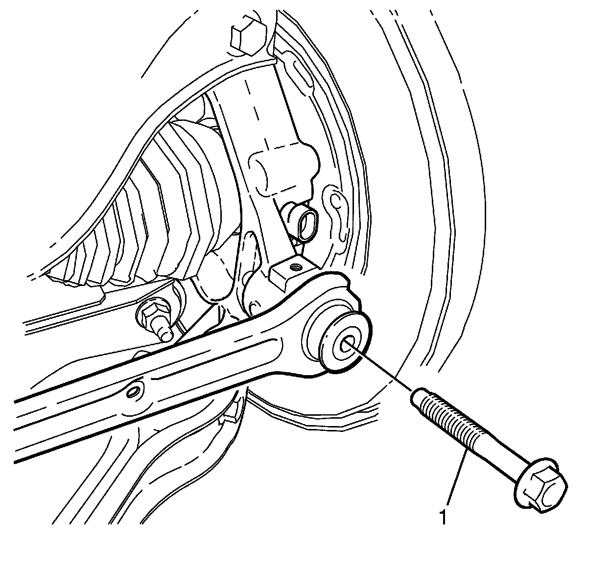 9. Remove the I-Link to knuckle retaining bolt (1).
