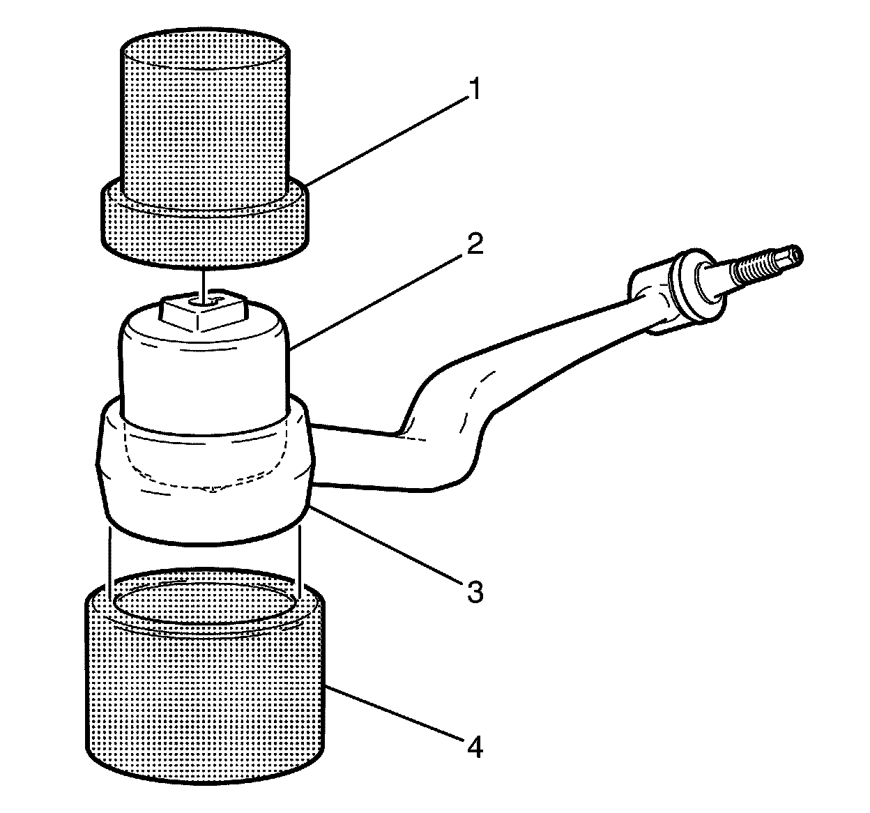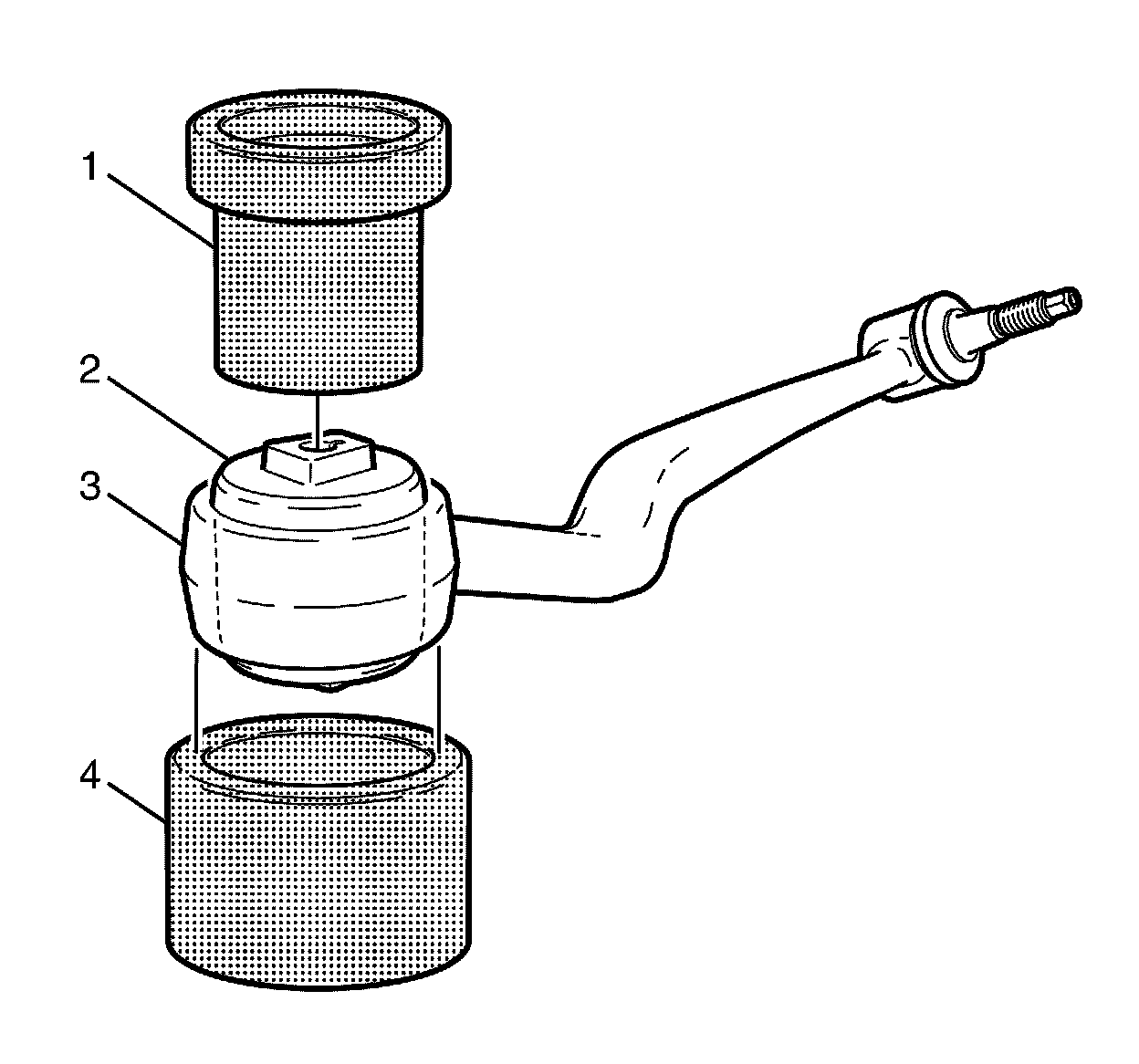 4. Remove the front caster arm bushing (2) from the front caster arm (3) using the KM-619 (1) and CH-48510 (4).