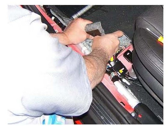 8. Move the seat rearward and pull back enough of the carpet to enable access to the affected retainer.