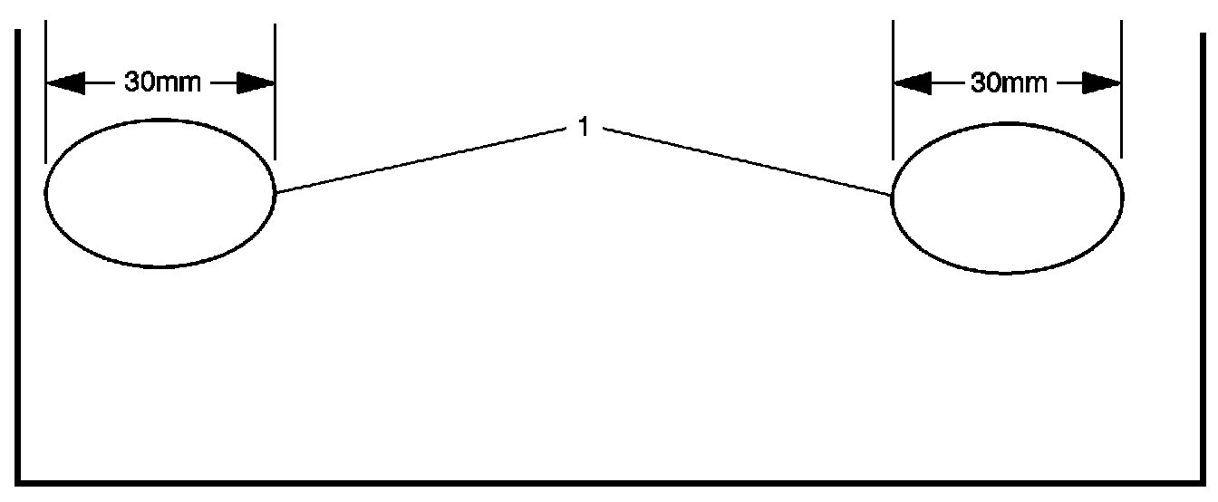4. Elongate the two existing cutouts (1) in the floor mat toward the center of the mat (3-4 mm (0.12-0.16 in)). This will allow the floor mat retainers to move inward relative to the floor mat.