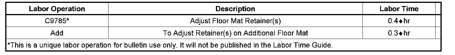 It is not necessary to adjust both front floor mats. ONLY adjust the floor mat retainers if a bulge or wave is present.