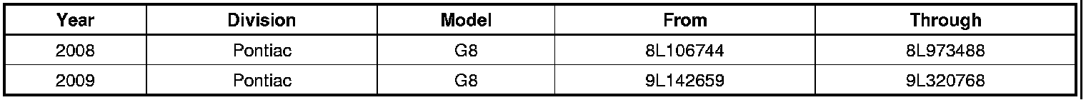 Involved are certain 2008-2009 model year Pontiac G8 vehicles built within these VIN breakpoints:
