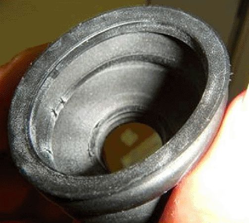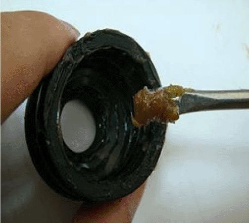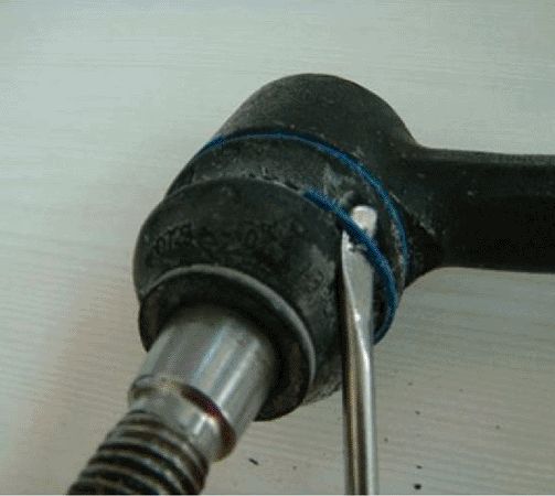 8. Using a clean, flat-bladed screwdriver or similar tool, scoop any grease from inside the removed boot and apply it to the open end of the ball joint housing.