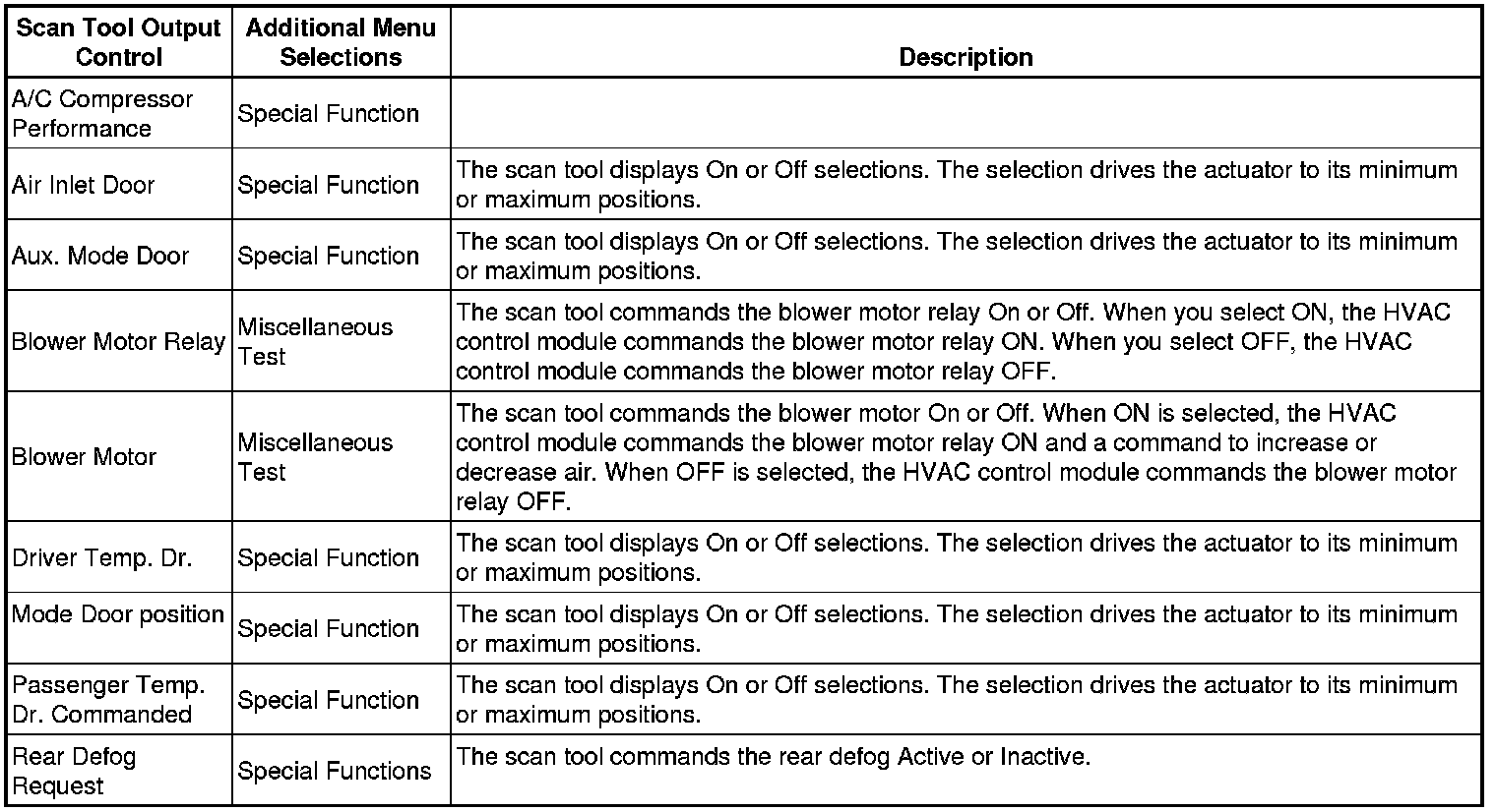 Heating Ventilation Air Conditioning Control Module Scan Tool Output Controls