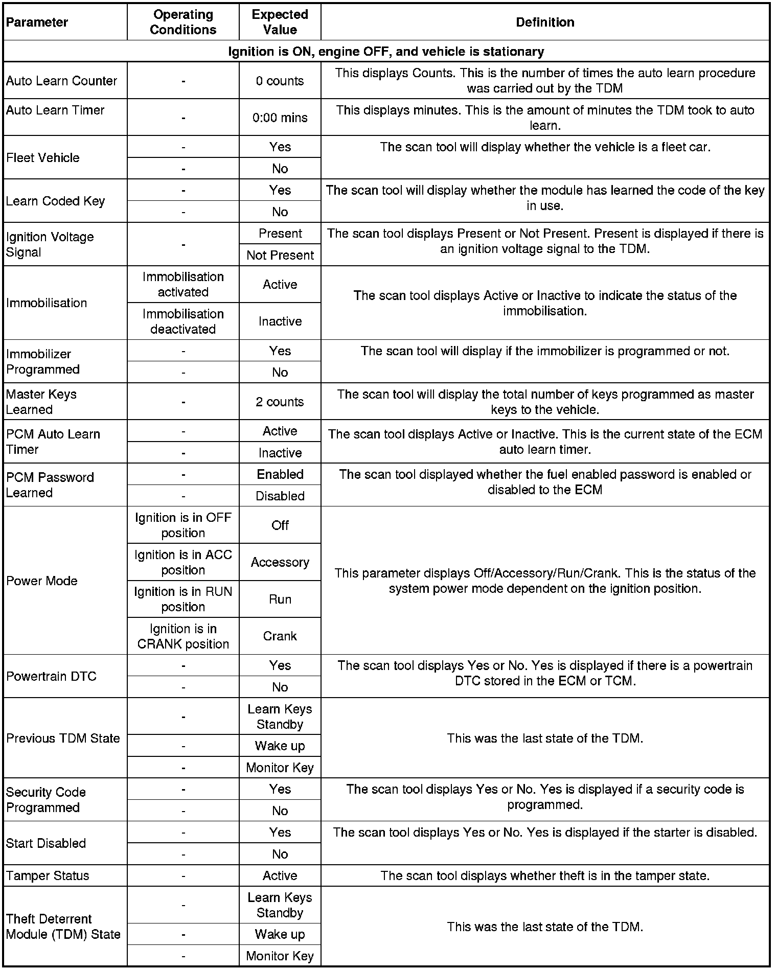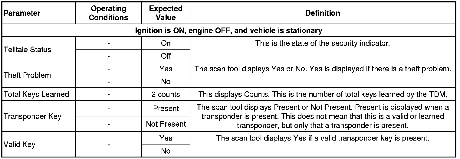Theft Deterrent Scan Tool Data Parameters