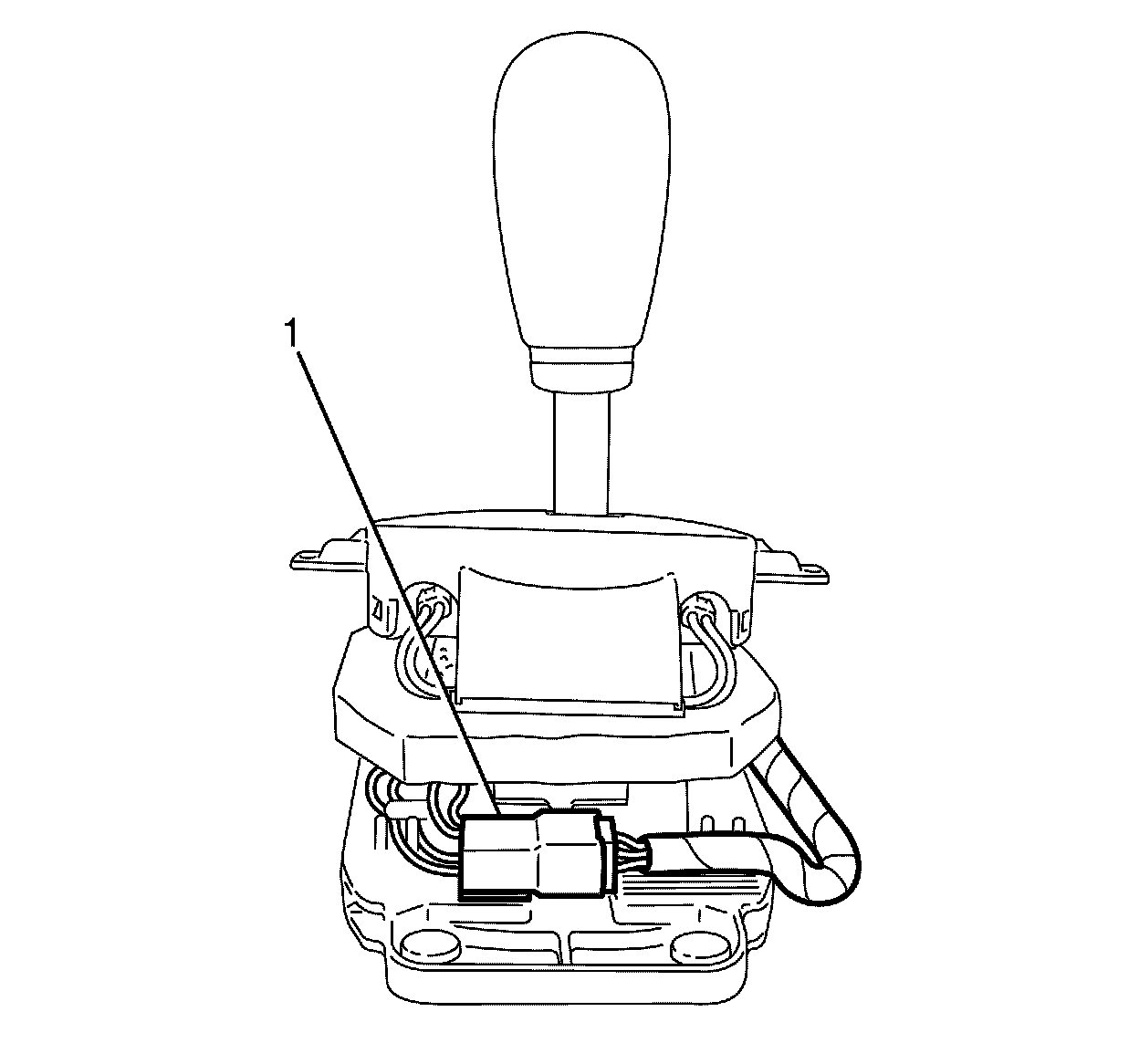 4. Disconnect the wiring harness connector (1) from the rear of the selector assembly.