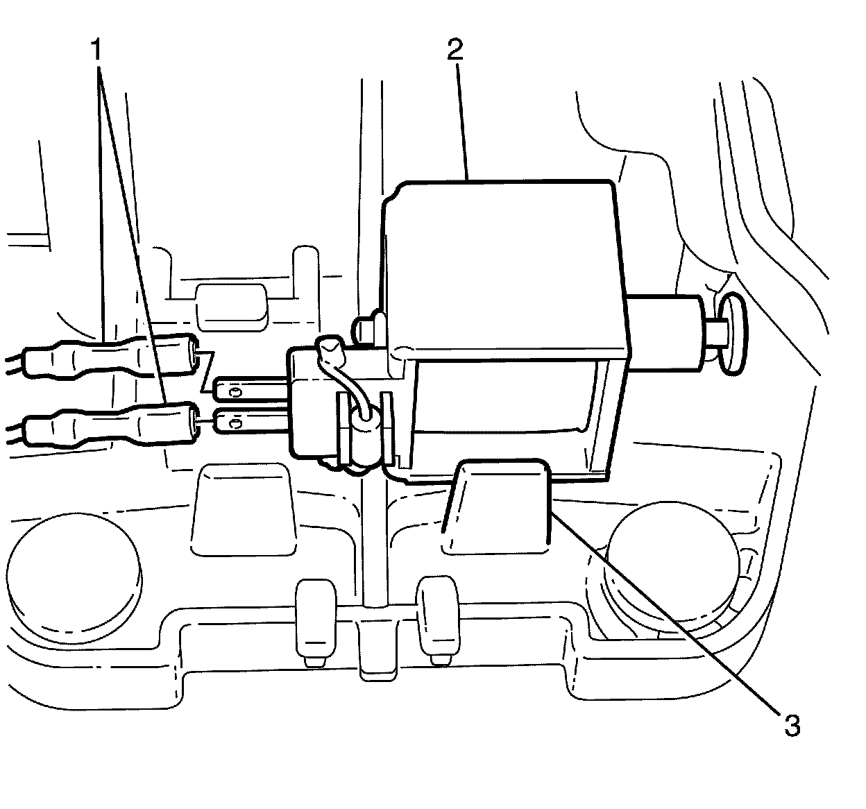 8. Disconnect the solenoid wiring harness connector (1) from the shift lock solenoid (2).
