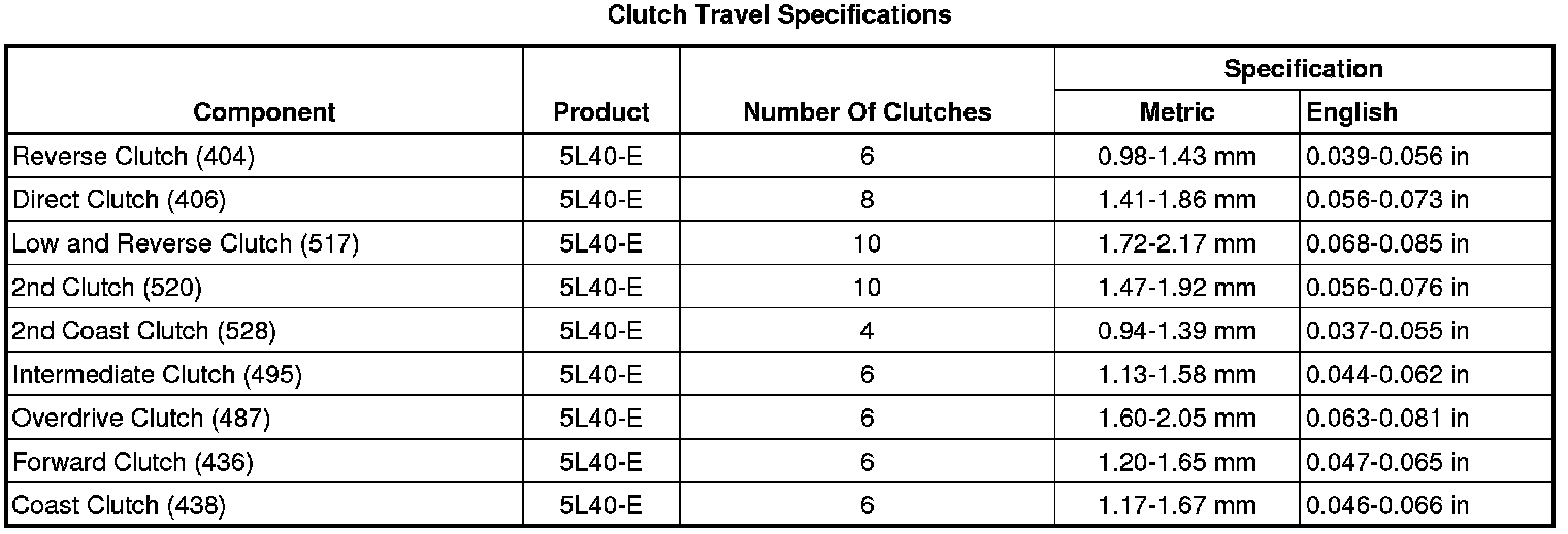 Clutch Piston Travel Specifications