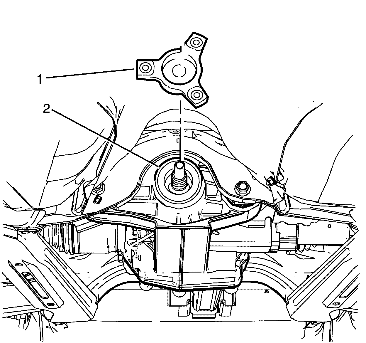 13. Install the puller (1) to the pinion flange (2).