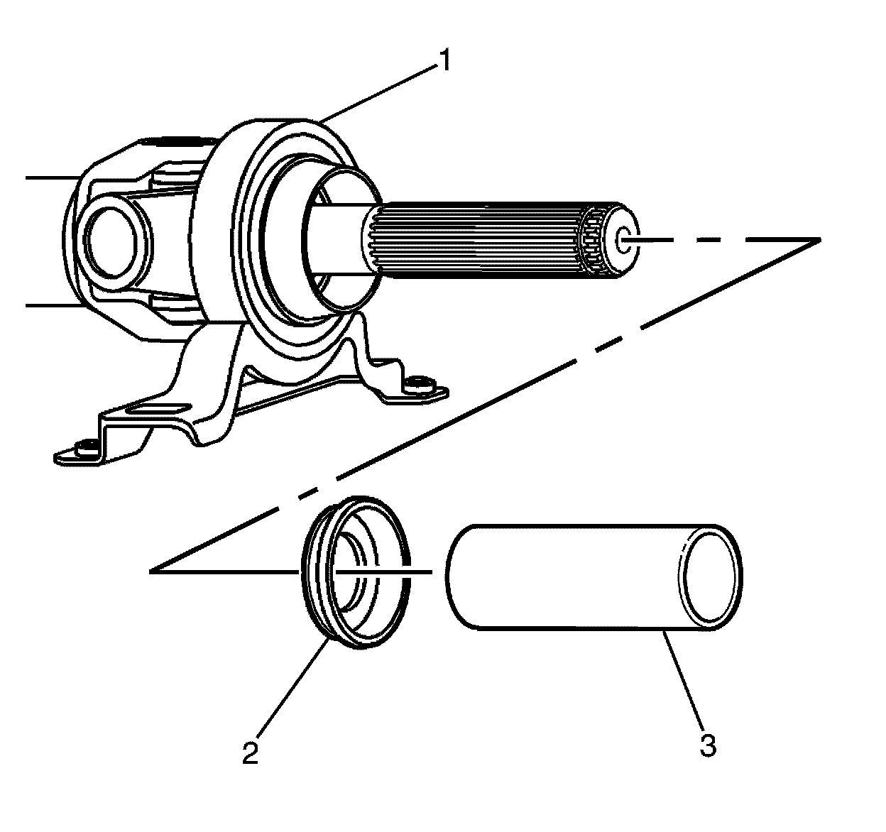 11. Remove the centre bearing (3) from the propeller shaft (2).