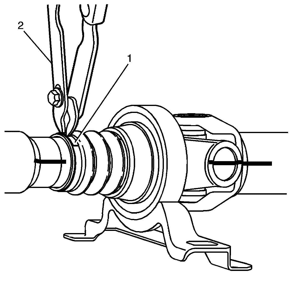 1. Install the centre bearing (1) to the propeller shaft (2).