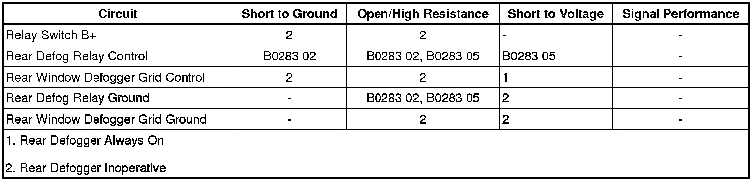 • If the rear window defogger grid does not activate, test the control circuit for an open/high resistance. If the circuit tests normal, test or replace the rear window defogger grid.