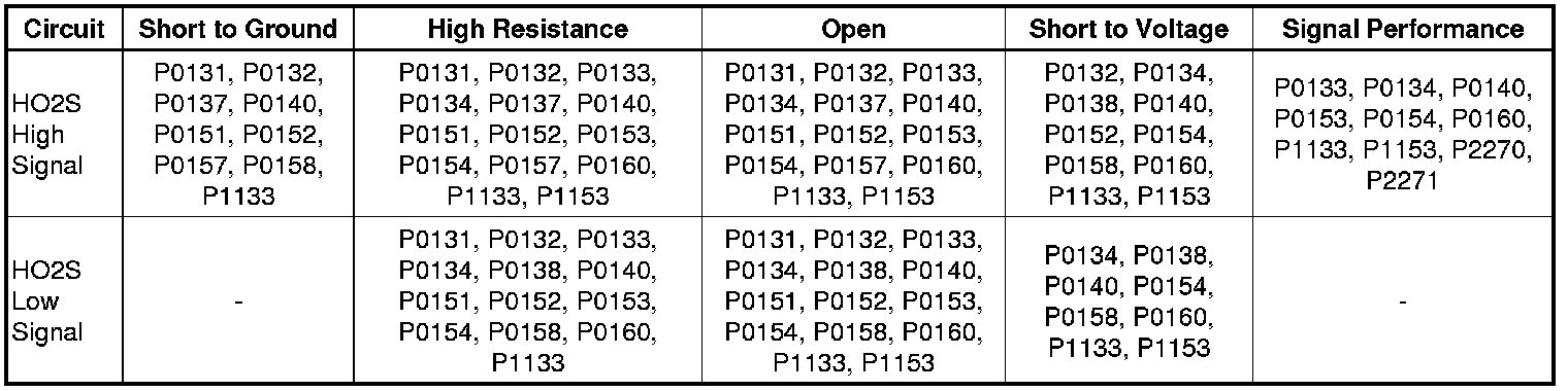 DTC P0133, P0134, P0140, P1133, P2270, or P2271