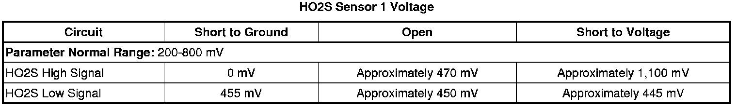 * The ECM detects that the HO2S 1 parameter is between 350-550 mV for 100 seconds.