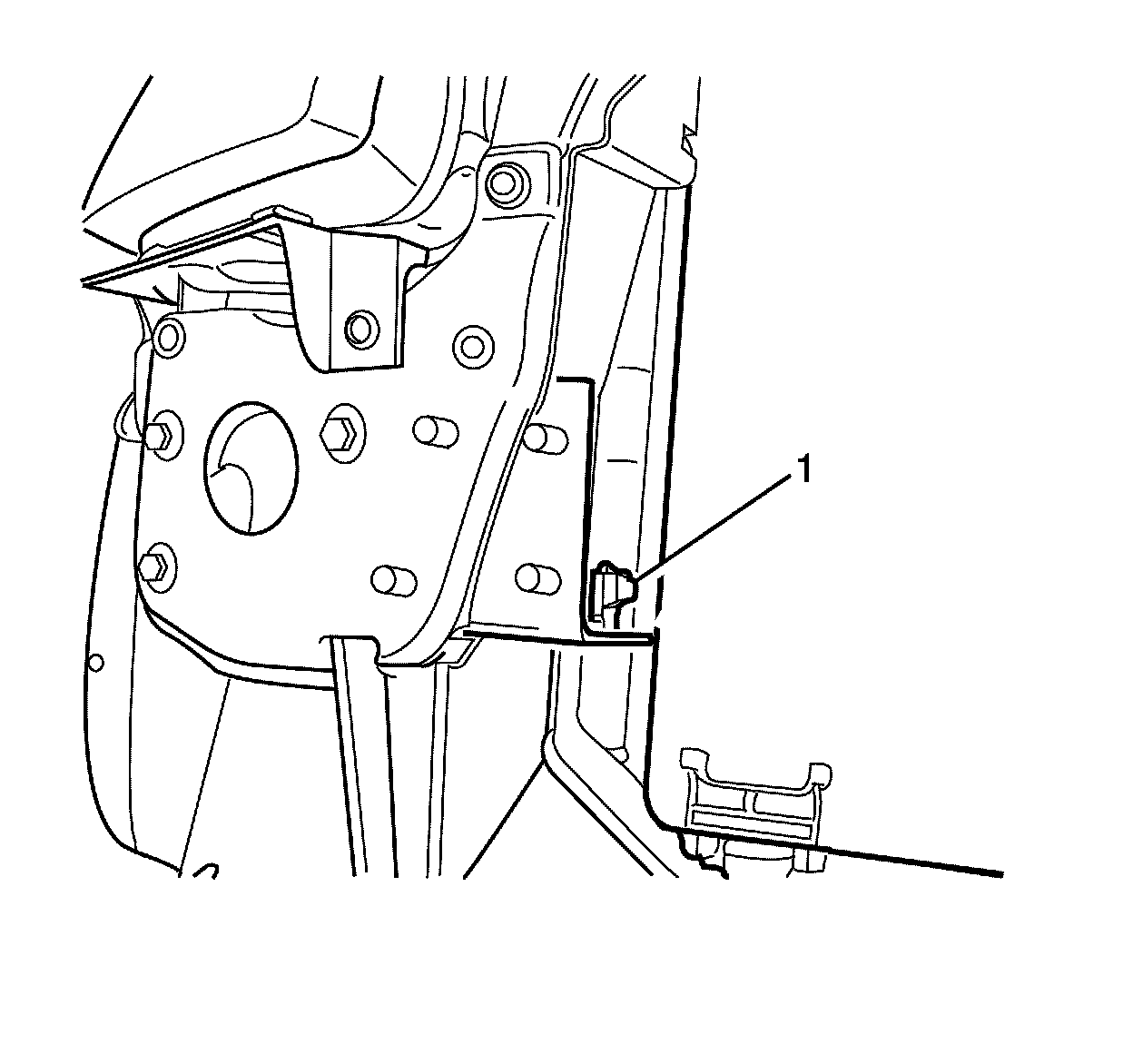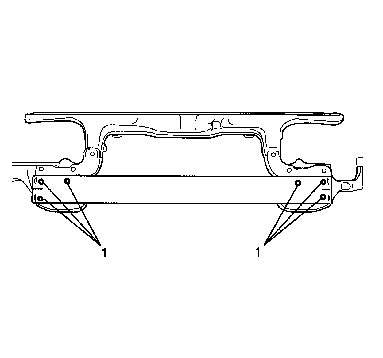 1.Install the front bumper impact bar to front end module retaining bolt (1). Repeat for opposite side.